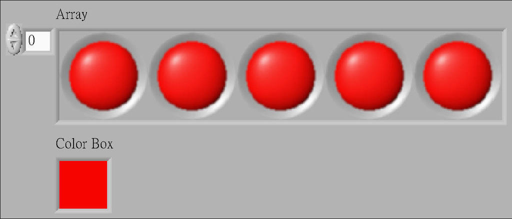 在基本的認知上,元件一旦放進陣列或叢集裏面後,除了元件本來的特性(例如布林元件的True和False、數值元件的數值、文字元件的文字...等)可以使用程式改變,其他像是顏色、隱藏、文字標籤...等屬性都無法使用正常的方法去改變