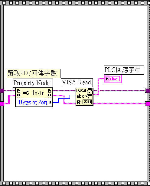 第3格同樣用Property Node元件設定為Bytes at Port接收判定PLC回應字串長度