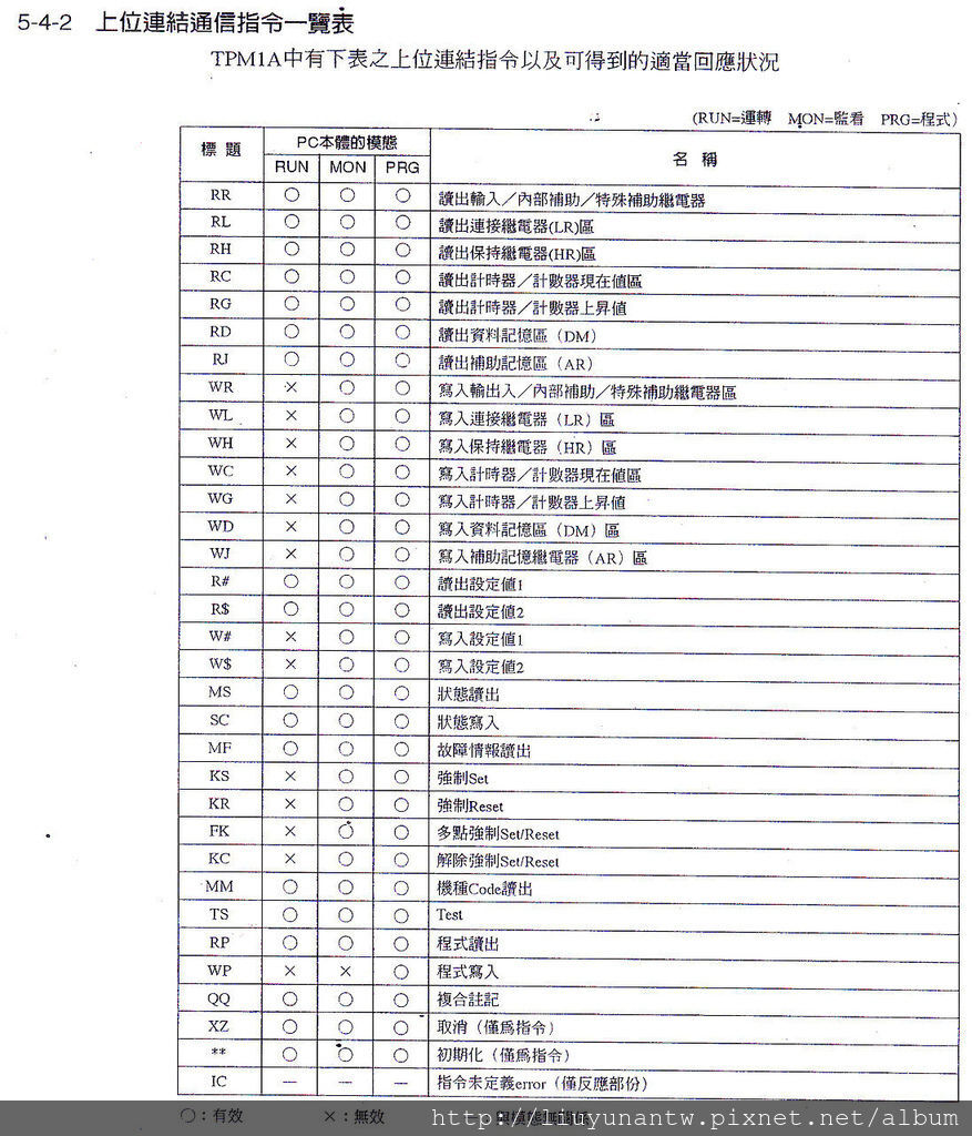 線都連好後硬體的準備到此全部完成。在來是實際看能不能通訊成功,因此還要在準備可用指令對照表,對照表可在操作手冊內找到。如下圖: