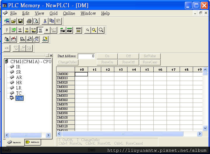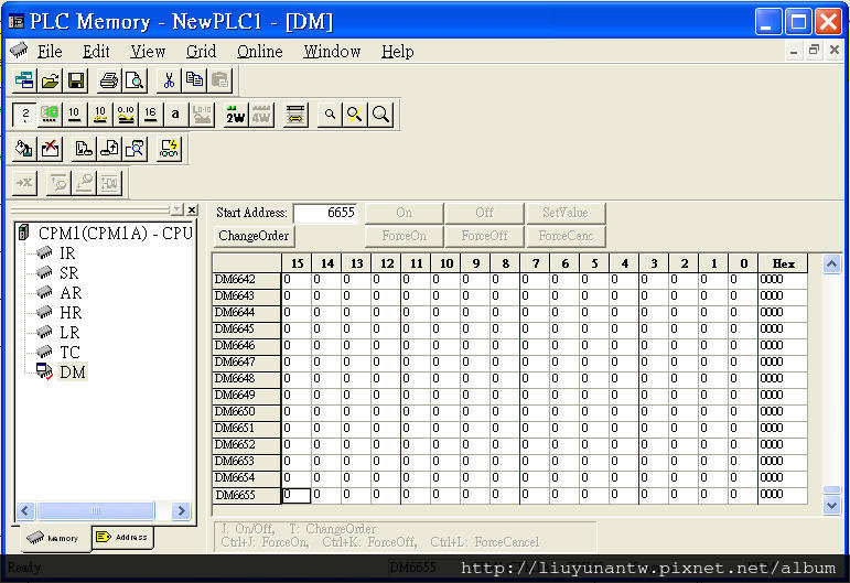 連點程式畫面左邊Memory這一項,進入PLC記憶體暫存器的設定畫面