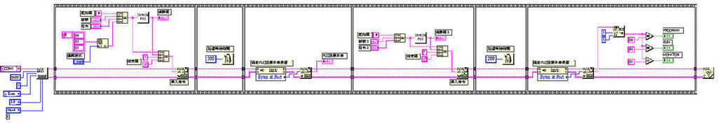 同樣用流程控制元件(Flat Sequence Structure)來完成,通訊參數和關閉通訊埠一樣寫到格子外