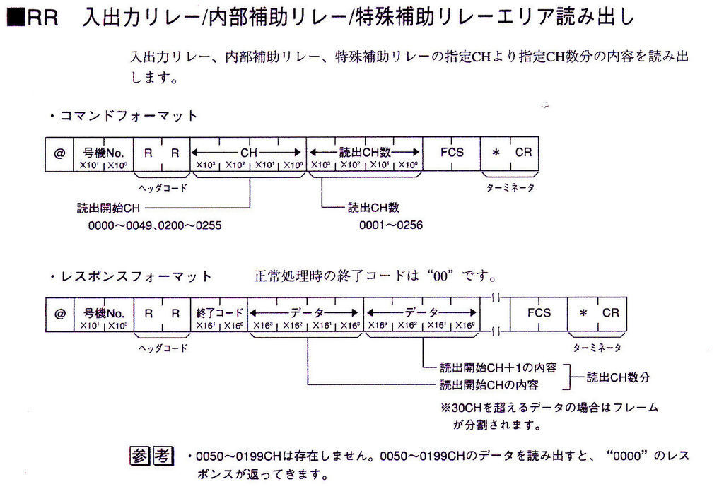 了解以上編號和BCD碼的觀念後,再來要實際討論多接點讀取命令RR,指令說明如下圖: