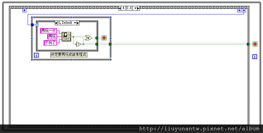最後部份則判斷選擇要再玩或不玩,若再玩則回到最前面的步驟,若不玩則結束程式