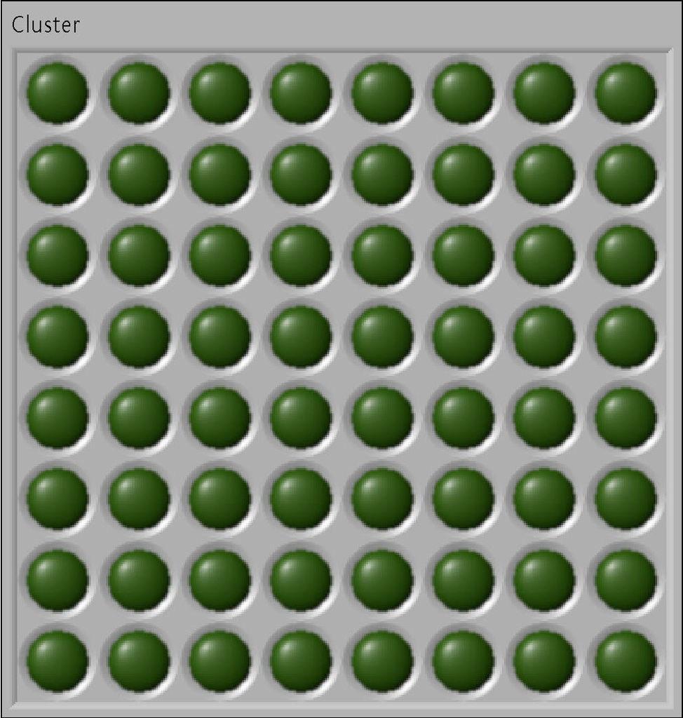 首先面板放上64個LED元件,排列好之後放到叢集內,如下圖