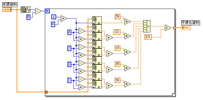 最近在做研究的是資料的平滑化處理,使用的方法是移點式平均法,每次從來源資料取用9筆資料計算,計算完畢後總資料數量少8筆