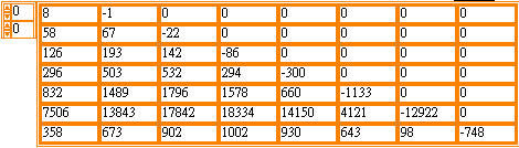 首先是把計算係數中的Ck,j值資料作成2D陣列(如下圖):