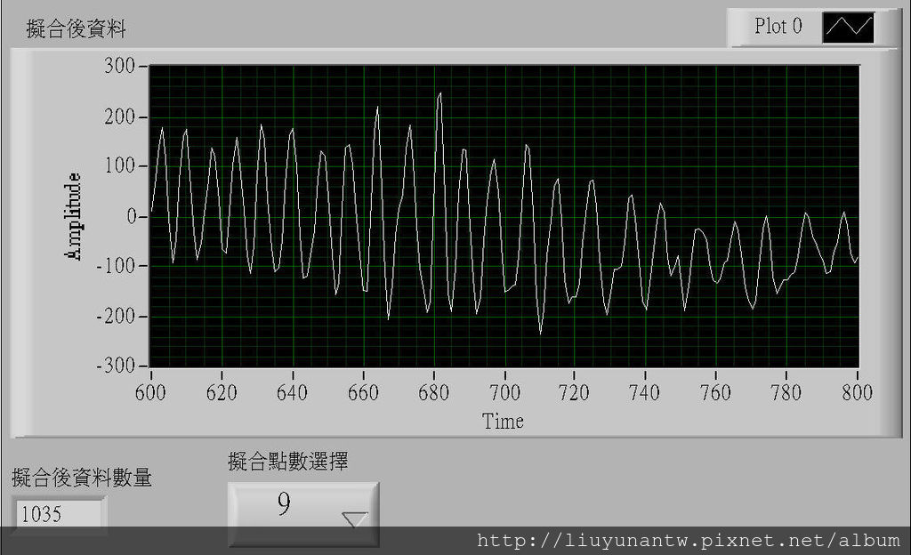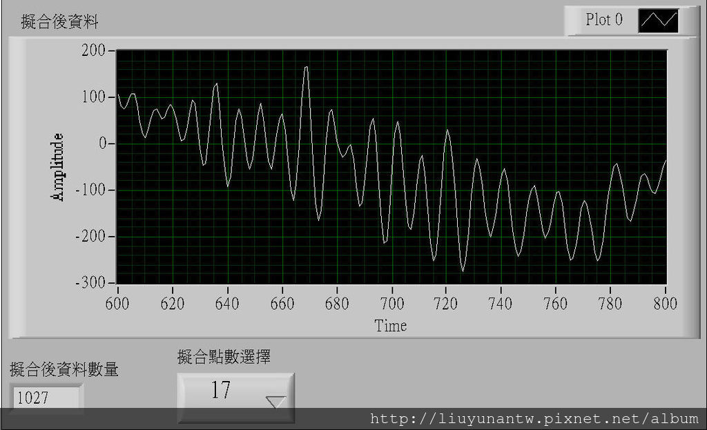 1個輸出端:使用Waveform Graph元件顯示擬合處理後的資料圖形