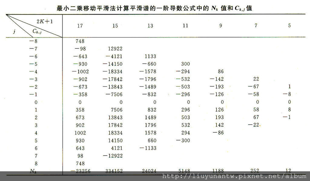 其中Ck,j值以中央的0為中心,上下係數相同但正負號相反,在程式內Ck,j值資料只要做單邊即可