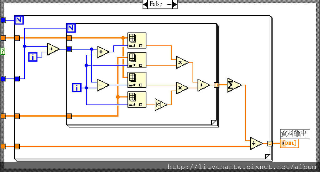 為了方便應用在其他程式,把計算公式寫成SubVI,而SubVI程式的基本要求是可選擇每次要擬合計算的資料筆數