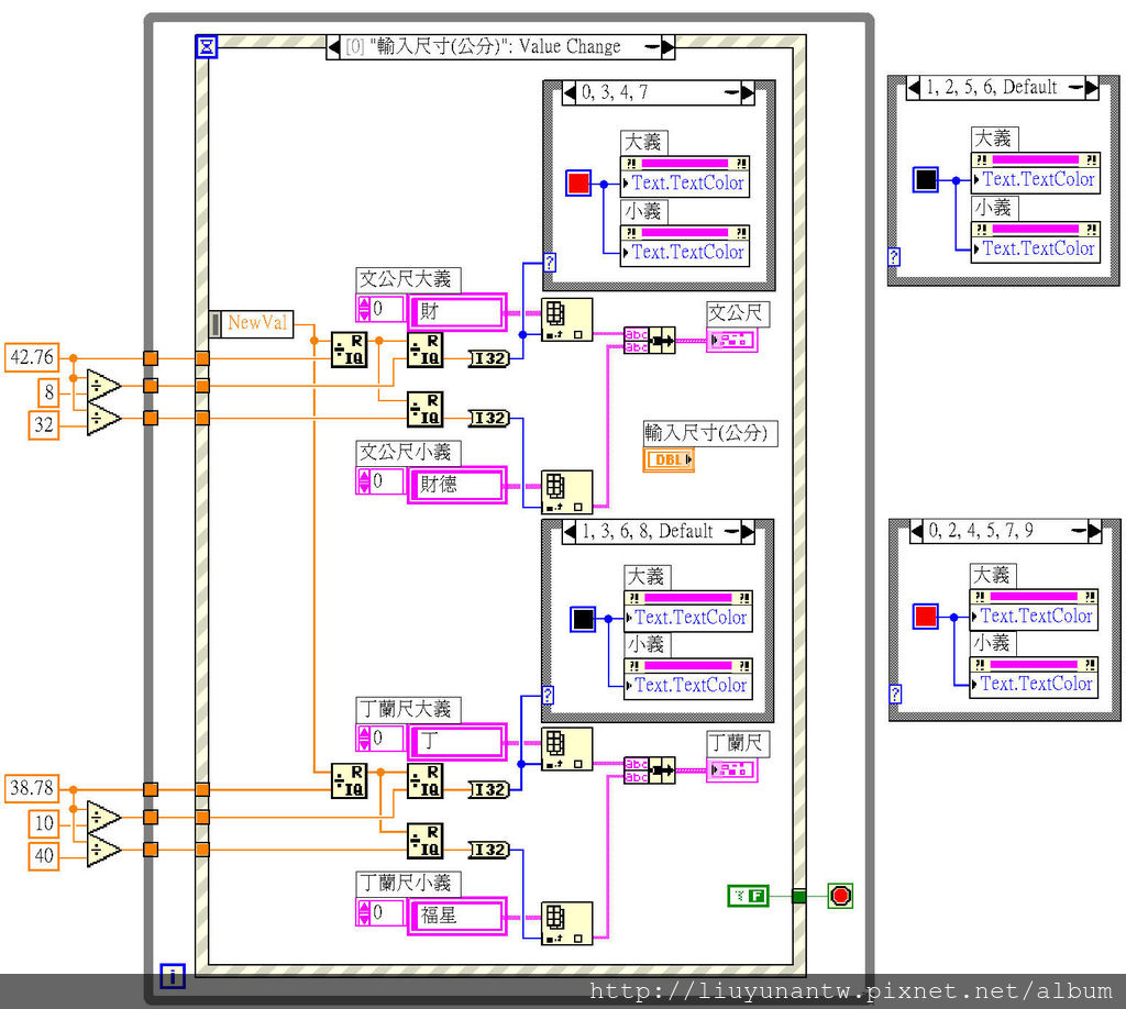 程式部分比較簡單,先把文工尺和丁蘭尺的字義作成陣列