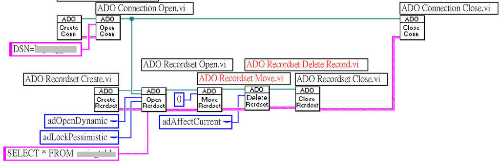 ADO Recordset Move.vi和ADO Recordset Delete Record.vi必需搭配使用
