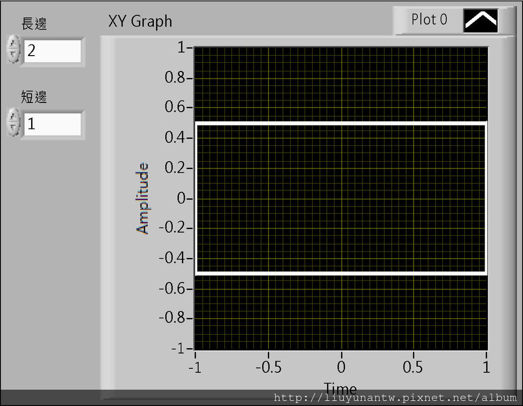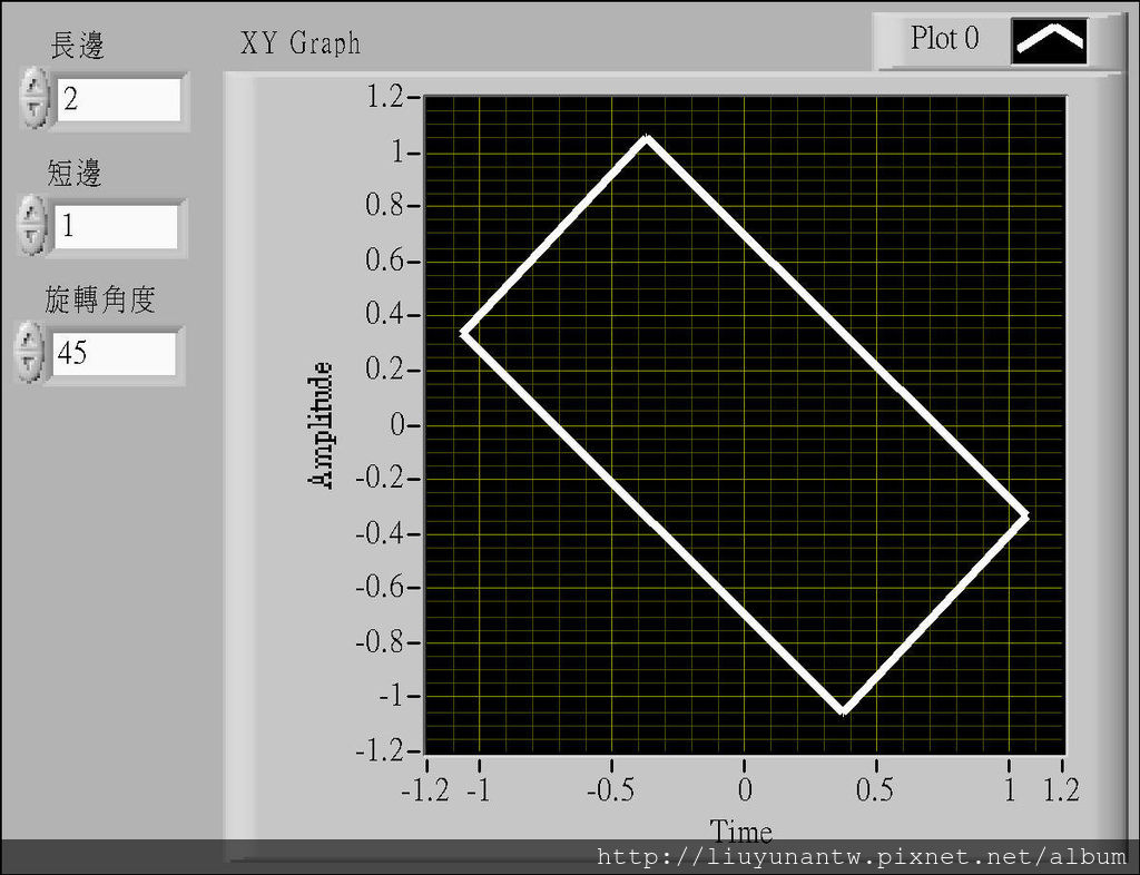 把寫成的SubVI叫進來用就可旋轉圖形,旋轉角度是順時鐘方向