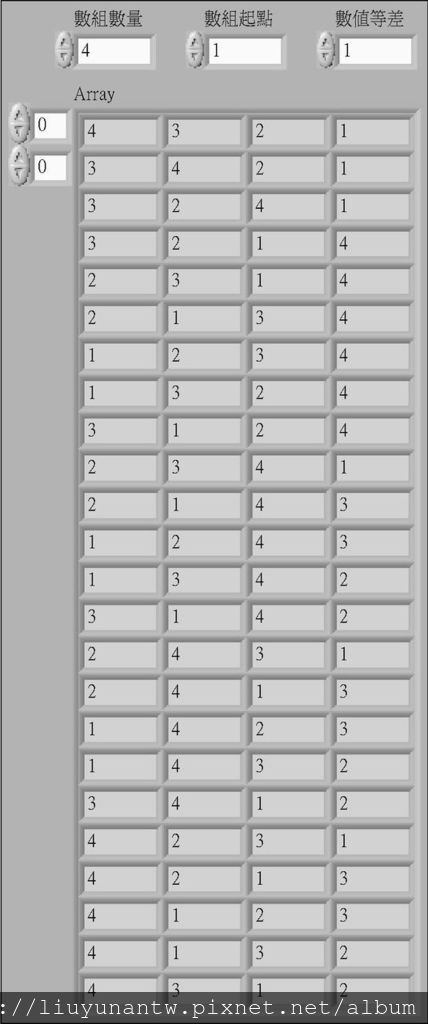 當然這一組數字不一定要是連續數值,也可以是等差級數或等比級數數值。因為等比級數數值處理上會使程式較複雜,所以這裡只做連續數值和等差級數數值。對等比級數有興趣的請自己研究修改