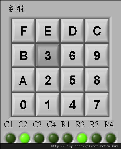 這個程式的目的是模擬一個4*4的16鍵矩陣鍵盤,輸出8個對應接點的狀態訊號(鍵盤的狀態編碼),訊號輸出的部分使用NI公司的USB 6501