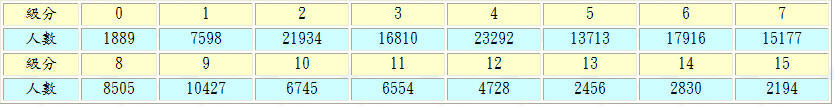 問題:已知有一份統計資料如下圖,要如何將這份資料做成直條圖,每筆資料需用不同顏色顯示