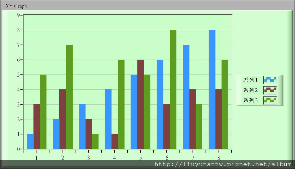上一個問題是希望每筆資料都不同顏色,而這個問題的圖形是3組數據,每組有8筆資料