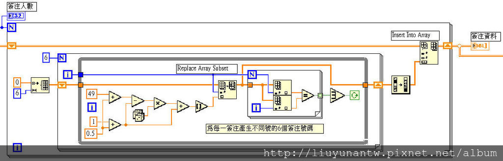 迴圈內的程式要為每一個簽注產生不同號的6個簽注號碼資料,而我在亂數產生的這部份程式使用的寫法是要確保每個號碼出現的機率近乎相同