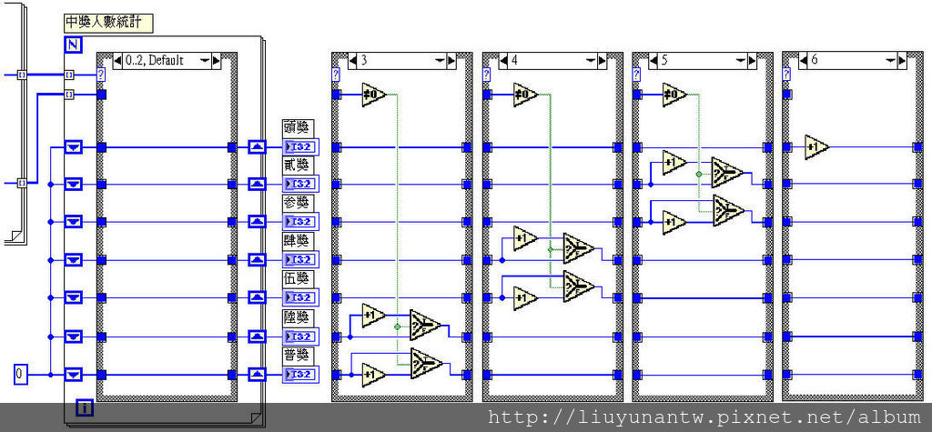 這裡較簡單,使用Case Structure元件就可分開中獎人的資料紀錄