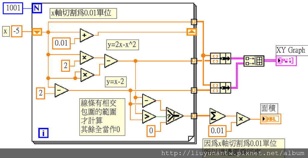 至於算出面積正確率在於x軸切割的精密度,我將x軸切割為0.01單位,正確率可到小數以下4位