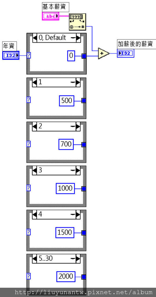 有附加條件在寄題目來時請先說明清楚,以下附上用Case Structure做好的程式