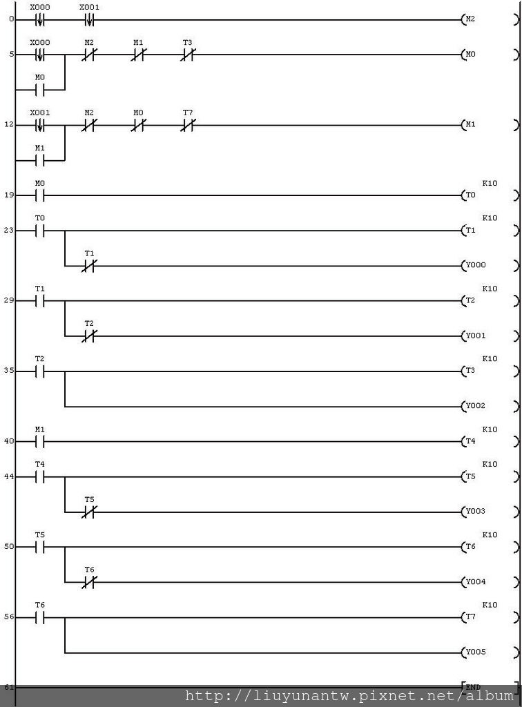 3.X0按鈕動作時,按X1按鈕沒有作用。X1按鈕動作時,按X0按鈕沒有動作。也就是動作互鎖