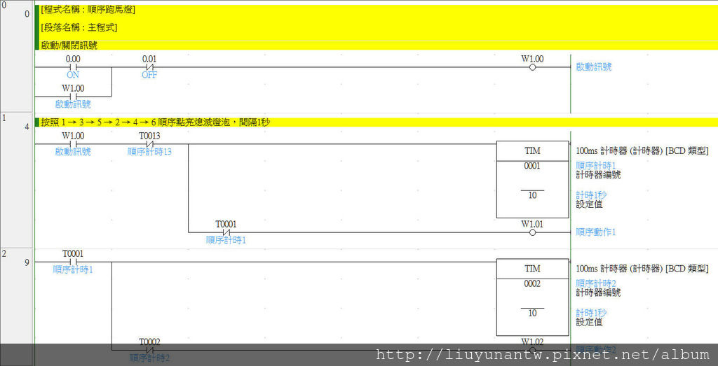 最後實際輸出的接點前面用輔助接點間接控制,要更改動作順序只要變更輔助接點,不用再重頭寫程式