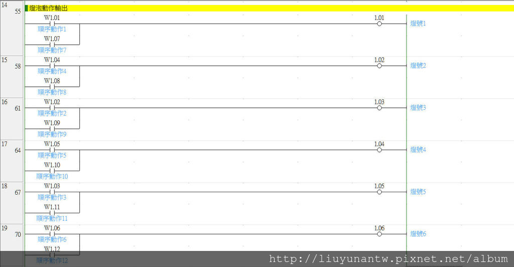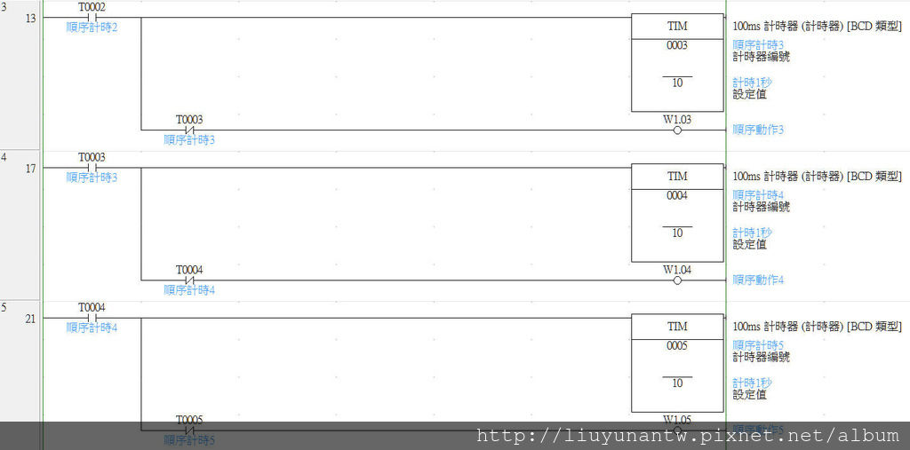 另外用輔助接點的好處是:每一個動作都可以使用一個輔助接點代替輸出,以後要查問題或更改動作比較好處理
