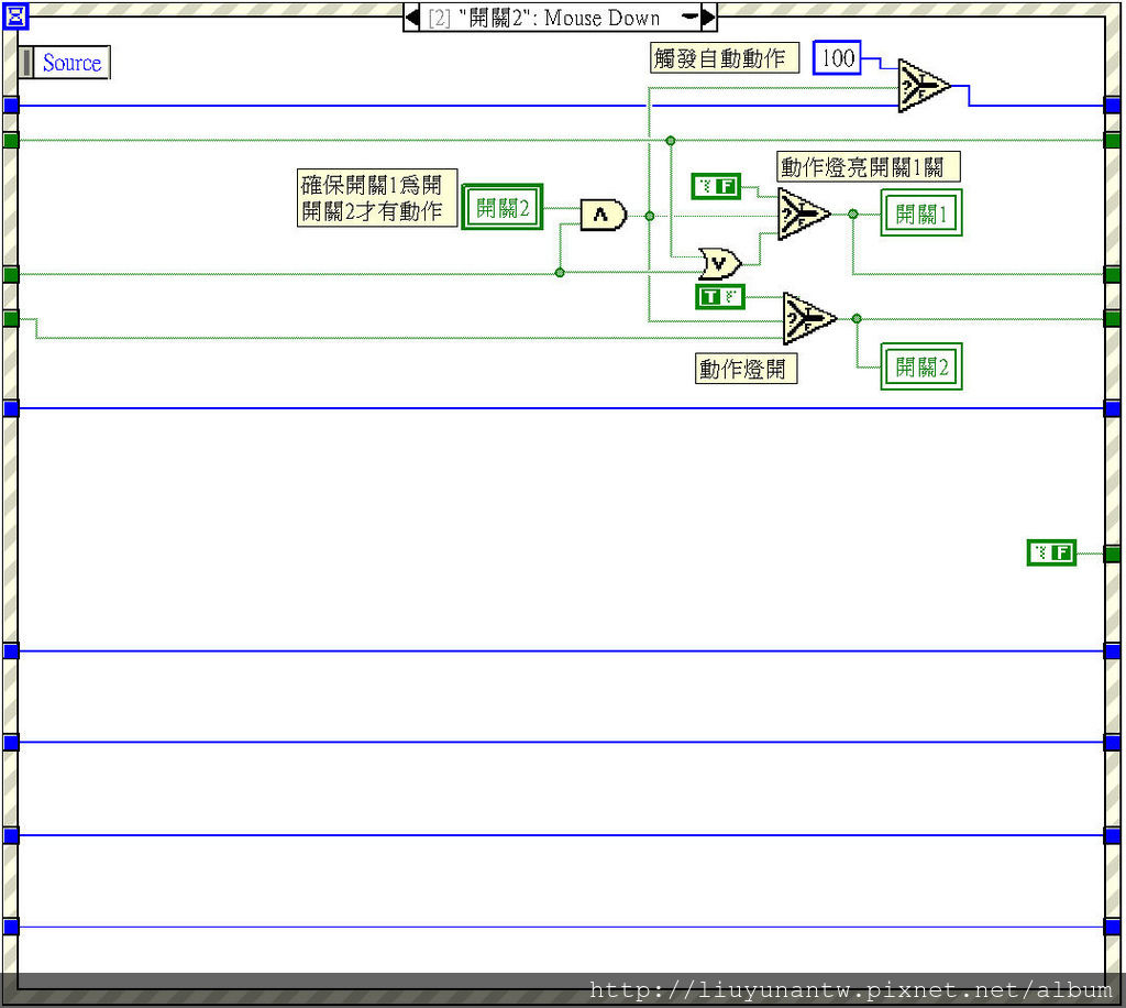 開關1和開關2以及燈號1和燈號2之間的切換機制變化範圍蠻大的,可能的狀況都儘量考慮進去,結果程式變的較複雜