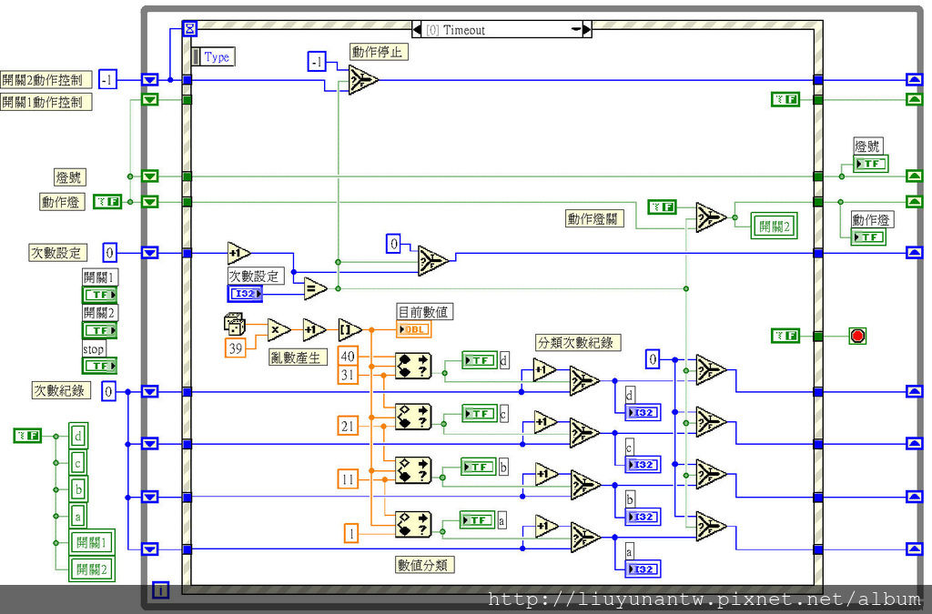 要有停止裝置stop,然後本來動作燈的那個地方變成算是一個偵測點。如果亮燈了,會再啟動一個開關 ---> 亮燈。如果那個偵測點沒有亮的話,那個開關就會不會啟動,也就是 開關----> 不亮燈