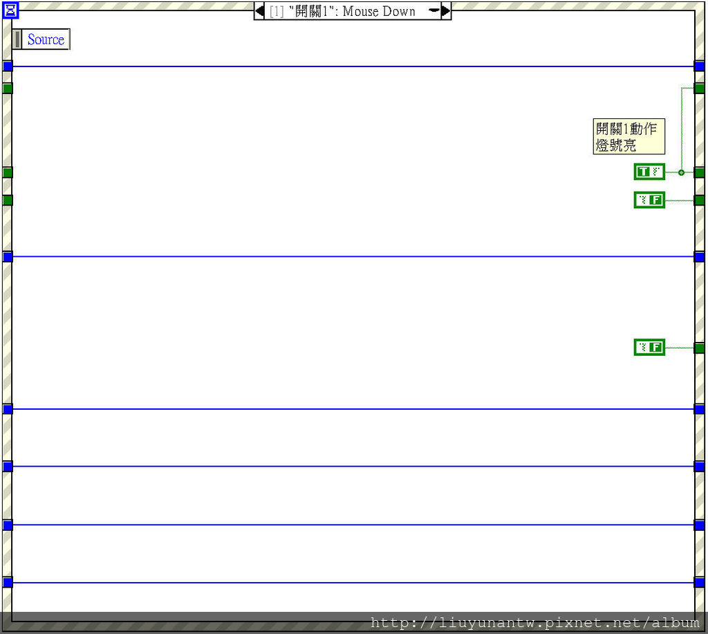 也就是一開始要先有一個開關(1)--->接燈,按下去亮燈...持續中...