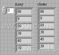 在Array To Cluster這個元件上按滑鼠右鍵,更改Cluster Size成為6個
