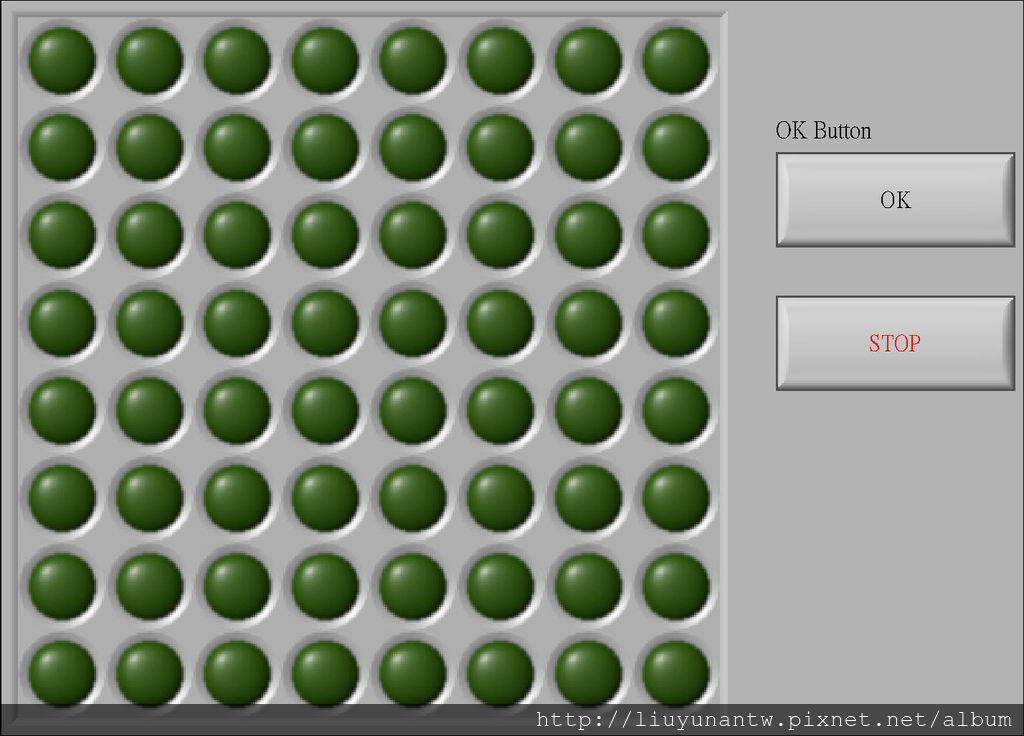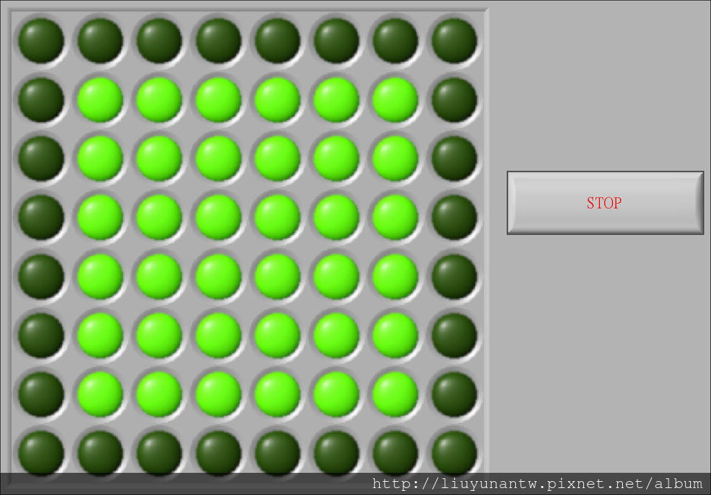 程式畫面的LED陣列和要顯示的LED陣列相同,排好畫面就按一次OK鈕自動將畫面轉成數值暫存,按STOP停止程式時存檔