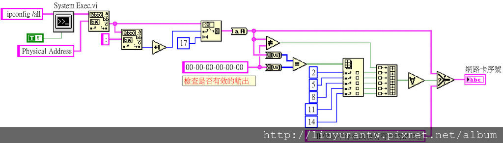 這個程式是透過System Exce.vi執行ipconfig /all命令來查詢網路卡序號