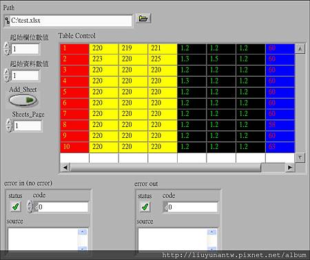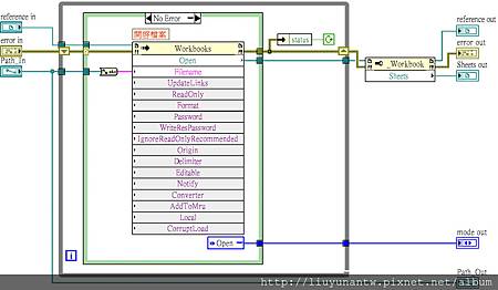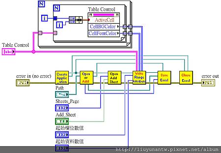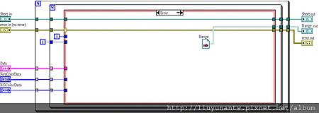第四個SubVI,實際寫入資料到儲存格,因為寫入2D陣列的整頁資料,所以這裡用雙迴圈處理