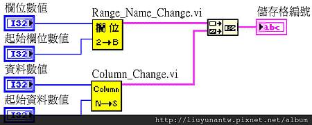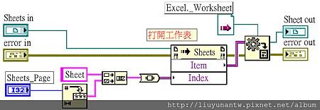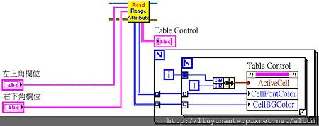 第四個SubVI,實際讀取儲存格資料,因為讀取整頁的資料後是2D陣列,所以這裡用雙迴圈處理