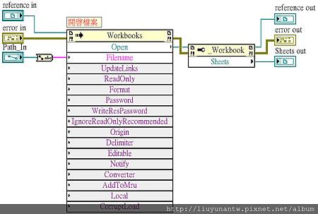 3.第3步同樣用Property Node設定取得Excel程式Workbook(活頁簿)的控制權