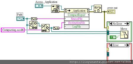 程式部分使用Invoke Node元件連好線後設定為CompactRepair那一項