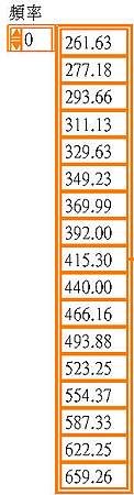 每個按鍵在叢集內的順序要從新排列,由低音順序排到高音,對應音高頻率的陣列,如下圖