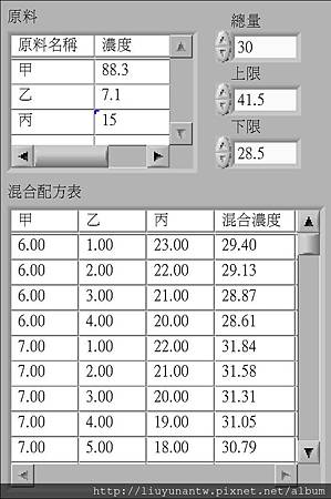 2.現在要將三種原料混合調合成濃度約在28.5到41.5之間,每種原料都要用到