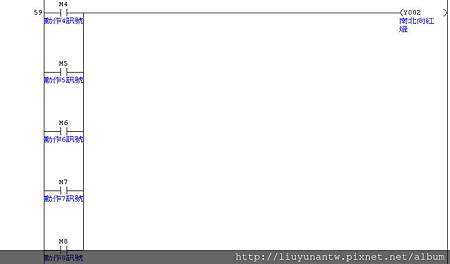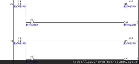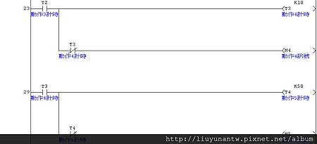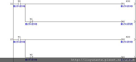 關於這個問題,簡單的做法把需要的動作依照順序編排,用輔助接點代表動作順序,最後再組合輔助接點順序到輸出點上即可