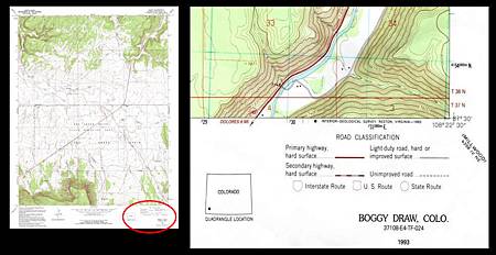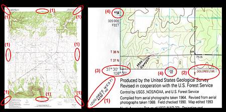 在地圖左上角具有負責測繪的管理局標記;因為陸地導航講義中的範例是美國,所以標記是美國地質探勘局