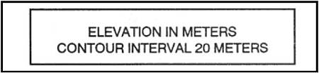 a.先在地圖邊界(圖框)信息確定等高線間距和使用的測量單位,例如,英尺、碼或公尺(如圖)