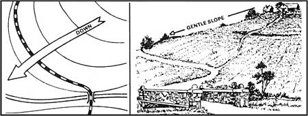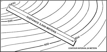 根據不同的軍事任務,士兵們可能需要確定一個小山不僅是高度還有山的坡度。地形特徵的上升或下降的速率是已知的計算其斜率。設備或人員可以移動的速度是由地面或地形特徵坡度的影響。可以從地圖上通過研究等高線了解坡度,等高線越接近,確定坡度越陡;等高線相距較遠,平緩的坡度。涉及軍事坡地的四種類型如下: