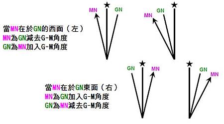 3.所以MN到GN減去49°-24°=25°GN(這個方位繪製在你的地圖上)