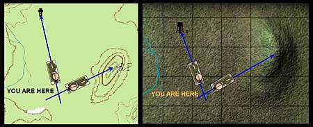 •交會法只有一個前提,必須在地圖上有出現2個可識別的地標點