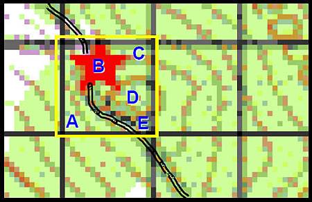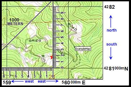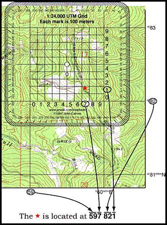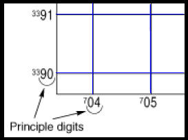 •UTM的數字表明東/西,南/北的位置。沿著邊緣左/右的數字被稱為縱座標,沿著頂部/底部的數字被稱為橫座標。數量增加表明你正在向北或向東行進,數量減少向南或向西