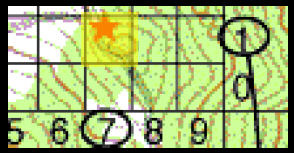 3.對齊軍用量角器到方格內,看看你的位置在小正方形(★)中的所在