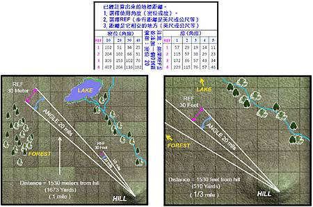 下面是一個例子。正如你可以看到REF 30英尺和REF 30公尺非常的不同,具有相同的角度20密位。距離是不同的