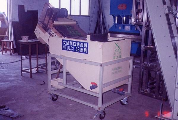 在試驗機失敗後,決議在找到適合的材料前,先製造整個系統中的清洗去除文蛤外殼藥水及吐沙沉澱的設備