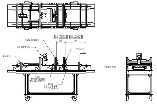 在仔細研究過西班牙和日本的機器和使用狀況後,我是建議從新開始不要仿製。因為輸送穴盤機構和播種機構有重大問題:輸送穴盤機構使用勾爪推動穴盤前進,要更換不同格數穴盤時調整異常複雜困難。作為播種機構核心的氣壓缸只有SMC這家廠牌生產還是期貨,引導播種針的引導軌道使用時間一久就很容易卡住;為追求播種效率,我提出把打孔機構從播種機移走另外做一台獨立的打孔機